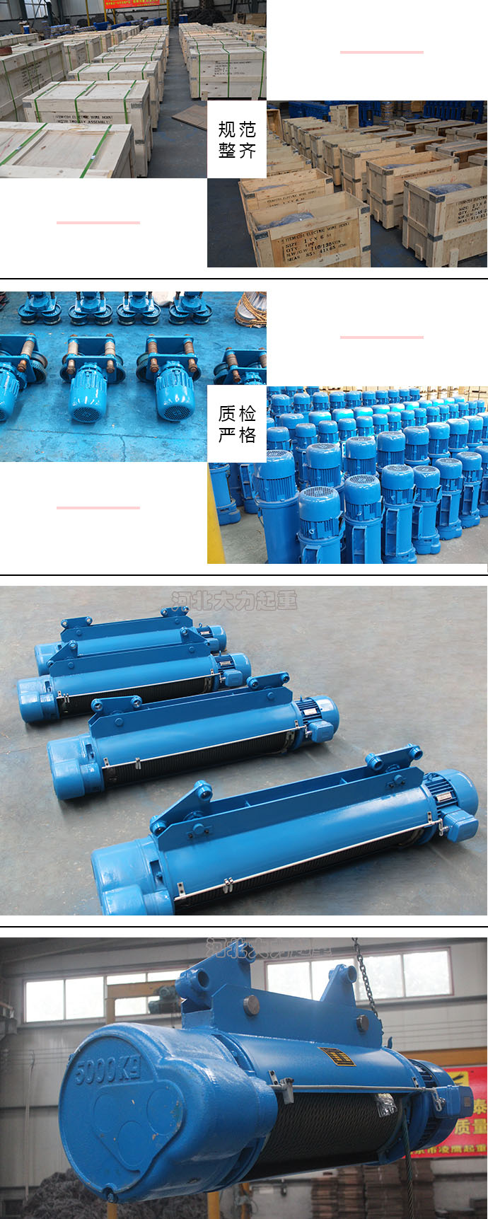 我公司也可以根據(jù)客戶提供得樣品和設(shè)計(jì)圖紙生產(chǎn)各種非標(biāo)鋼絲繩電動(dòng)葫蘆產(chǎn)品,以滿足客戶不同得需求。我們奉行科技是第一生產(chǎn)力的原則并且嚴(yán)格貫徹質(zhì)量標(biāo)準(zhǔn),從采購(gòu)原材料到貨物運(yùn)輸整個(gè)流程都有嚴(yán)格控制,確保產(chǎn)品的優(yōu)質(zhì)精良。24小時(shí)熱線電話:15803222055